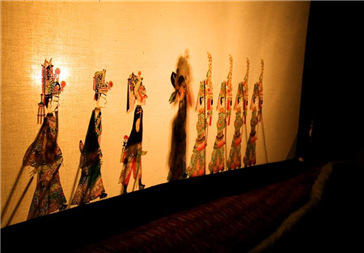 皮影戏,又称“影子戏”或“灯影戏”,是一种以兽皮或纸板做成的人物剪影,在蜡烛或燃烧的酒 精灯光源的照射下用隔亮布进行演戏,是中国汉族民间广为流传的傀儡戏之一。表演时,艺人 们在白色幕布后面,一边用手操纵戏曲人物,一边用当地流行的曲调唱述故事,同时配以打击 乐器和弦乐,有浓厚的乡土气息。《火焰山》《盘丝洞》《洞庭湖》《三打白骨精》《人参姑娘》《鹤童》《刘胡兰》《沙家浜》《杜娟山》